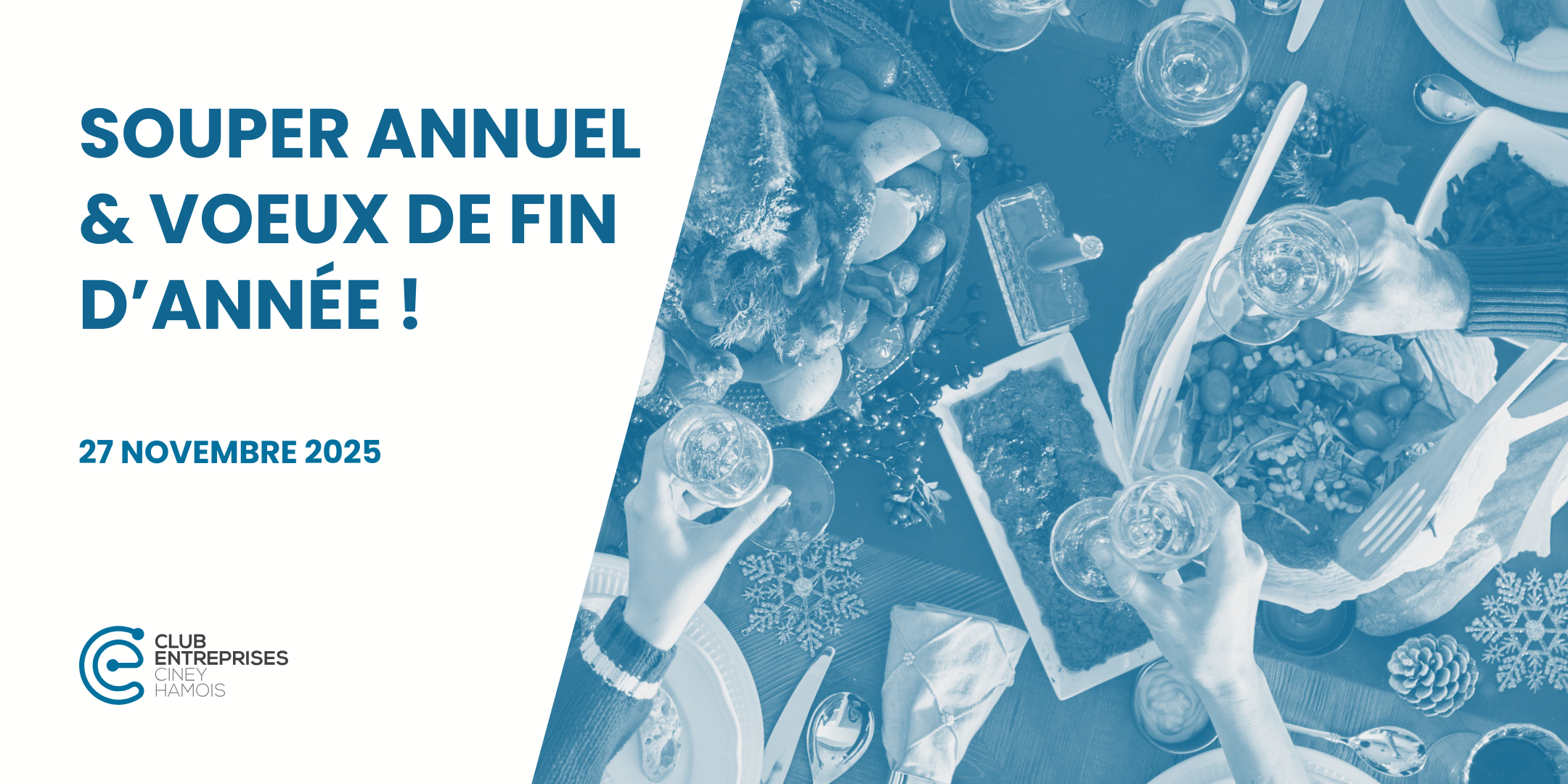 Le dernier grand rendez-vous de l’année approche ! Rejoignez le souper annuel du Club Entreprises Ciney-Hamois le 27 novembre à la Casa Alpina des Fééries du Parc. Un moment gourmand, festif et 100 % networking !